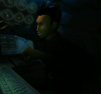 With the help of Zip, Tara hacks an electronic terminal near a wall not far from entrance to breach the security system and locate the Artifact Room.
